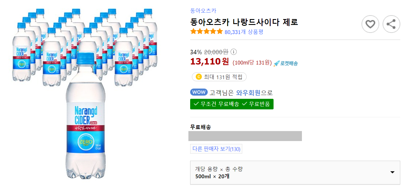 또한 제로 칼로리 탄산음료를 대량으로 시키는 것도 잊지 않는 편이다.