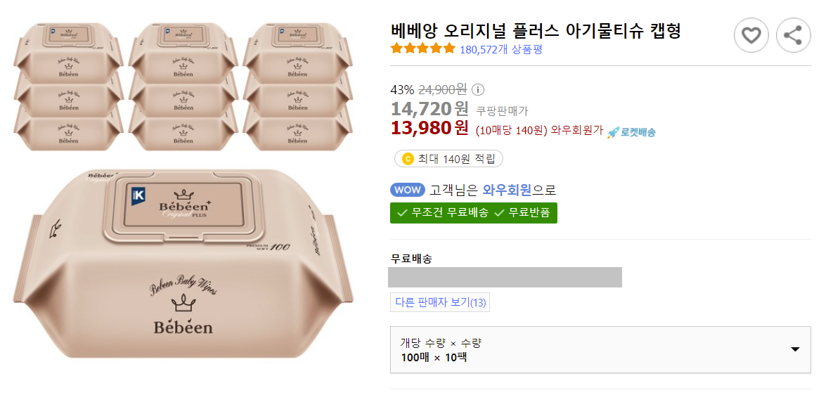 또한 물티슈도 주기적으로 구매하는 편이다.