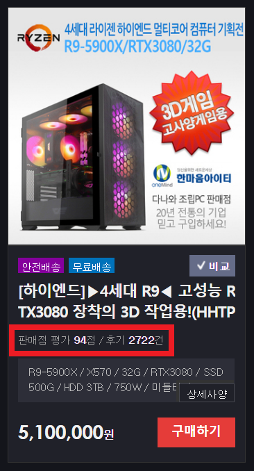 이후에 [하이엔드PC] - [고사양 게임용]에 들어가면 고성능 PC 견적을 확인할 수 있다.