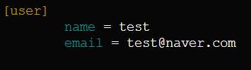 실제로 .gitconfig 파일의 내용을 확인했더니 다음과 같이 깃 계정 정보가 기록되어 있는 것을 확인할 수 있었습니다.