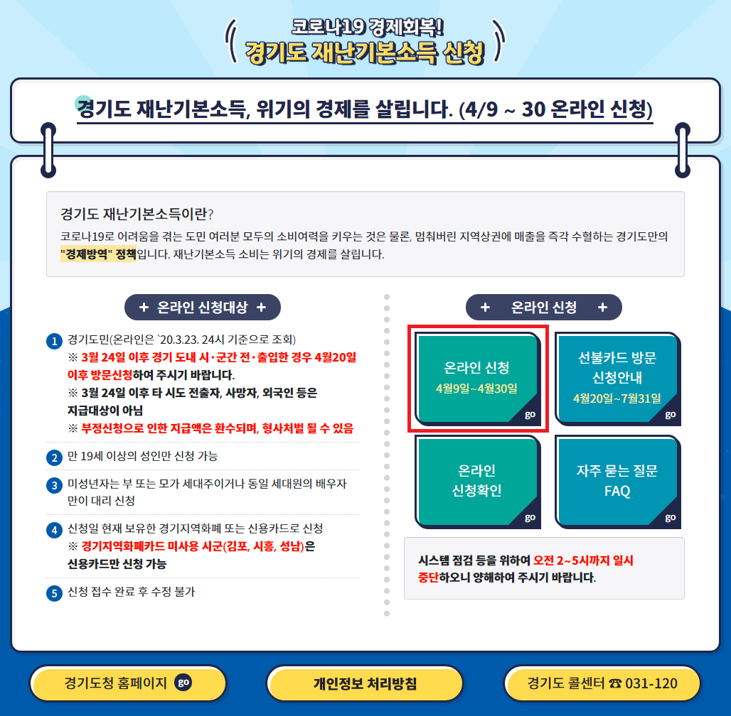 경기도 재난 지원금 (재난기본소득) 온라인 신청 방법