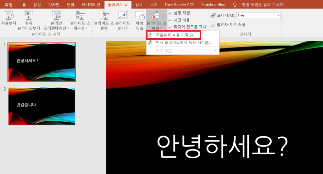 파워포인트에서 발표 녹화(음성 녹음)하는 방법