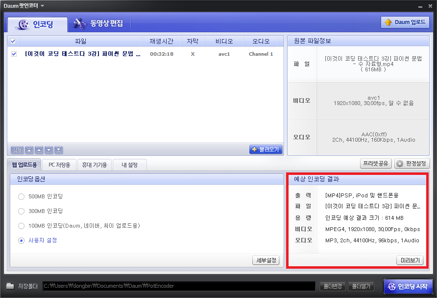 ▶ 다음 팟 인코더 다운로드: get.daum.net/PotEncoder/DaumPotEncoder.exe