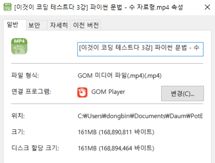 앞서 말했듯이 강의용 영상의 경우 이렇게 인코딩을 했을 때 용량이 훨씬 줄어드는 경우가 많다.