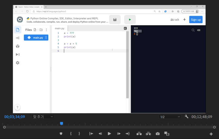 나는 아래와 같이 강의 영상을 편집할 때 코드 작성하는 부분에서 영상과 목소리가 서로 싱크가 안 맞는 경험을 했다. 경우에 따라서는 편집 화면에서만 안 맞는 것처럼 보이고, 내보내기를 하여 동영상 플레이어로 보았을 때는 문제가 없을 수도 있다. 하지만 나는 실제로 내보내기를 해도 내보내기 한 영상에서 싱크가 맞지 않았다.