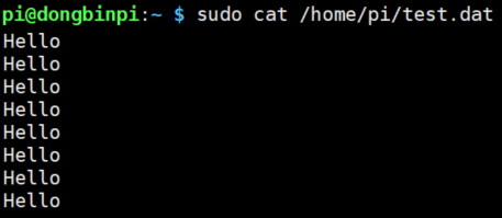 프로그램을 여러 번 실행하면 라즈베리파이에는 다음과 같이 파일의 내용이 쓰인다.