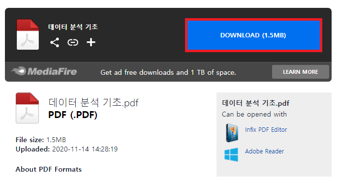 이후에 링크에 접속하면 다운로드(Download) 버튼이 등장한다. 참고로 무료 계정의 경우 광고(ad)가 다수 등장할 수 있기 때문에 다운로드를 받는 입장에서는 유의할 필요가 있다.
