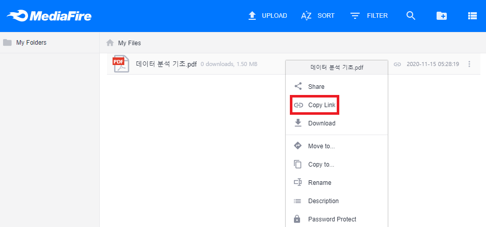 이후에 다음과 같이 [Copy Link]를 눌러 링크를 복사할 수 있다.