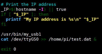 결과적으로 다음과 같이 /etc/rc.local 파일을 수정하면 된다. 기본적으로 cat과 >> 를 이용하여 파일의 뒤쪽에 쭉 이어 붙여 데이터를 쓸 수 있도록 한다.