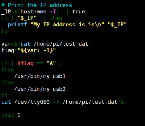이후에 /etc/rc.local을 아래 내용을 넣는 방식으로 바꾼다. test.dat의 가장 마지막 문자열이 A일 때는 첫 번째 Configuration, B일 때는 두 번째 Configuration을 이용한다.
