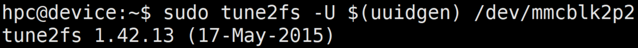 먼저 tune2fs에 대하여 알아보자. tune2fs는 리눅스 파일시스템의 다양한 변수 값을 바꿀 수 있도록 도와주는 명령어다. 한 번 OS가 존재하는 ext4 형식에 해당하는 /dev/mmcblk2p2 디바이스의 UUID를 변경해보겠다.