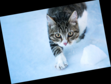 angle 값이 10일 때(angle=[10, 10], expand=False)의 또 다른 예시는 다음과 같다. 이 경우 회전만 시키고, 원래의 이미지 사이즈에 맞게 이미지를 resize하지 않기 때문에, 사진의 일부 영역이 가려져 보이지 않게 된다.
