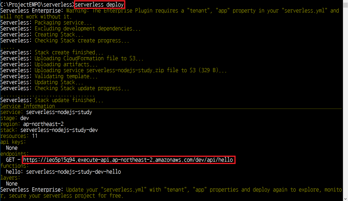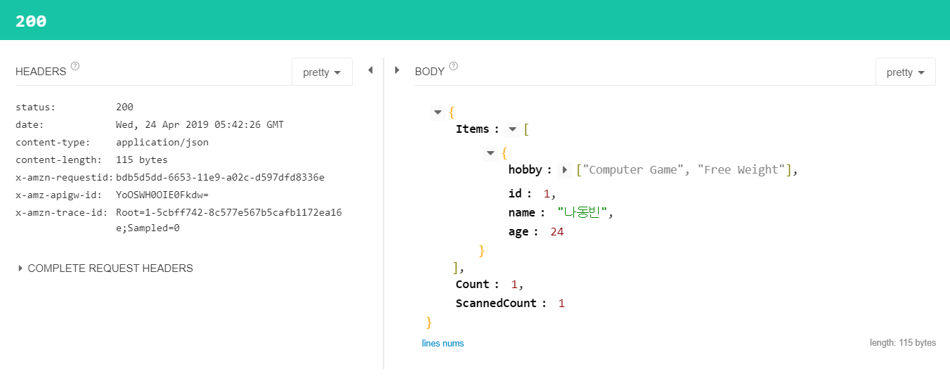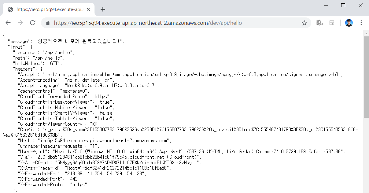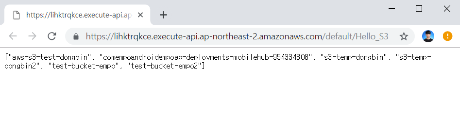이후에 API 게이트웨이의 URL에 접속하여 결과를 확인할 수 있습니다.