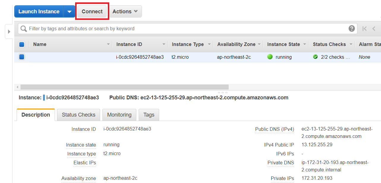 EC2 관리 페이지: https://ap-northeast-2.console.aws.amazon.com/ec2/v2/home