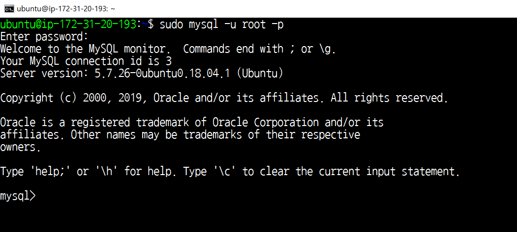 sudo mysql -u root -p # MySQL 접속