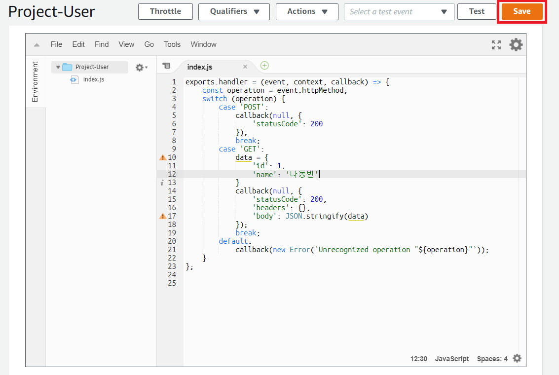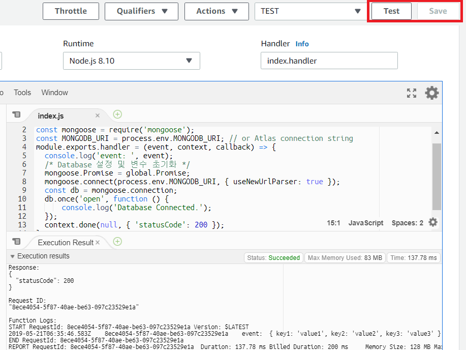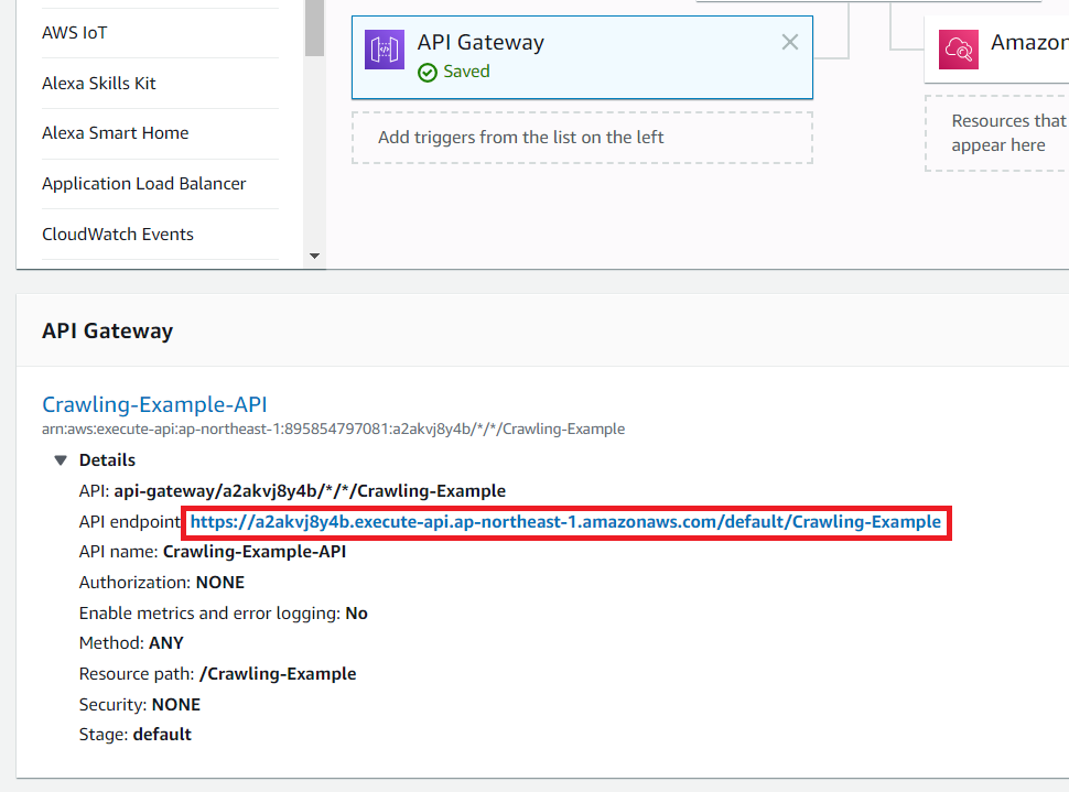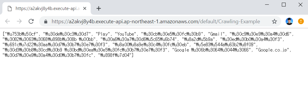 이후에 람다 함수의 [Save]를 진행하면, 이제 API에 접속했을 때 성공적으로 크롤링 된 결과가 출력됩니다.