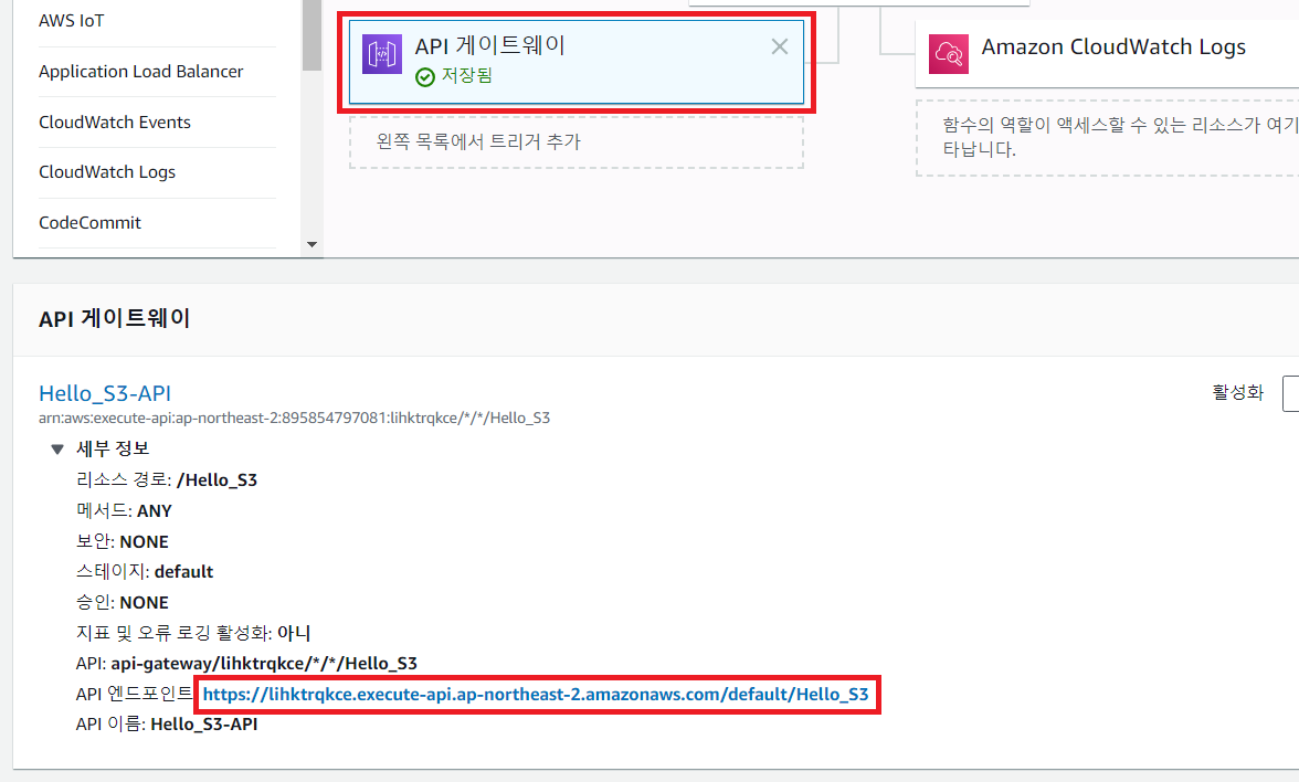 이후에 [Save]를 눌러 적용합니다. 그리고 API Gateway의 URL을 확인하여 접속합니다.