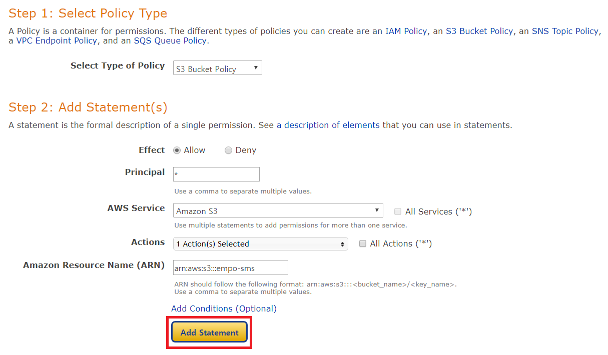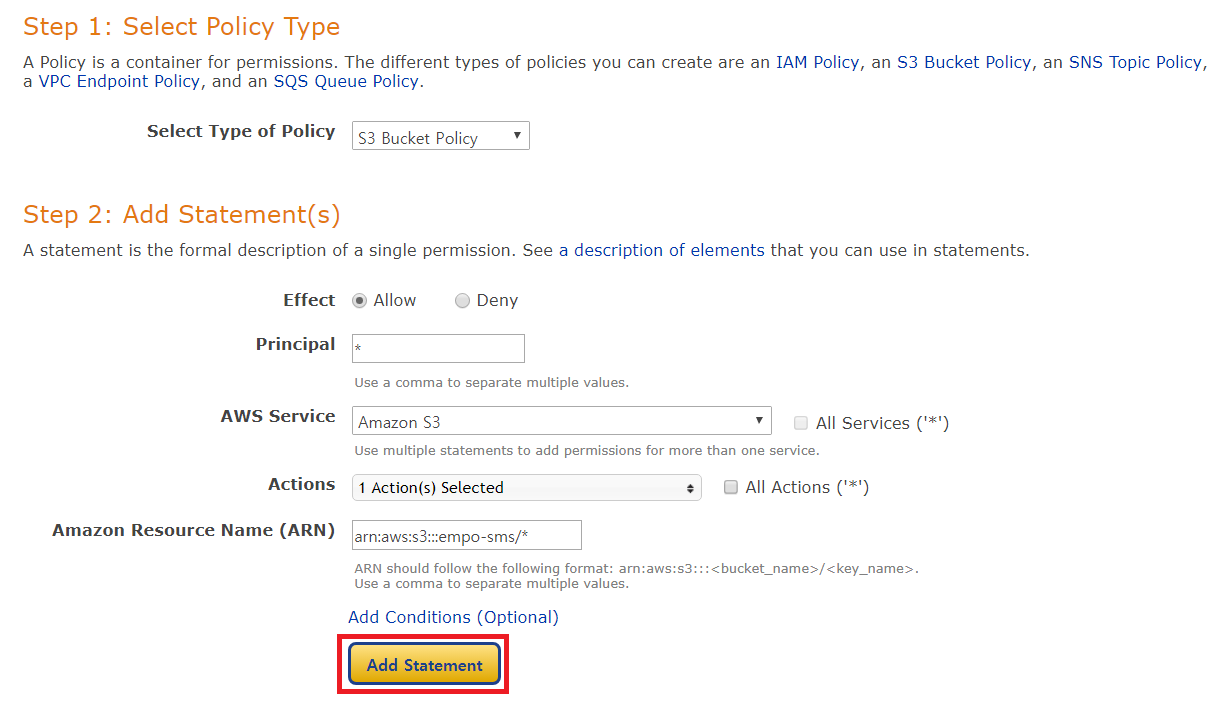 먼저 자신의 AWS Bucket의 경로(ARN)에 Put Object 액션(Action)을 부여합니다.