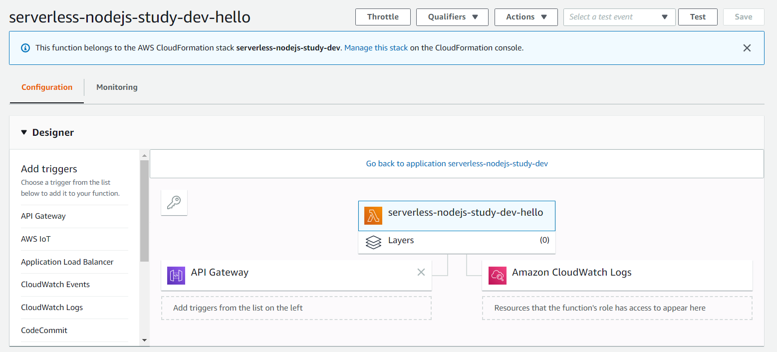 접속 결과, Lambda의 기본 코드에 의해서 다음과 같이 출력됩니다.