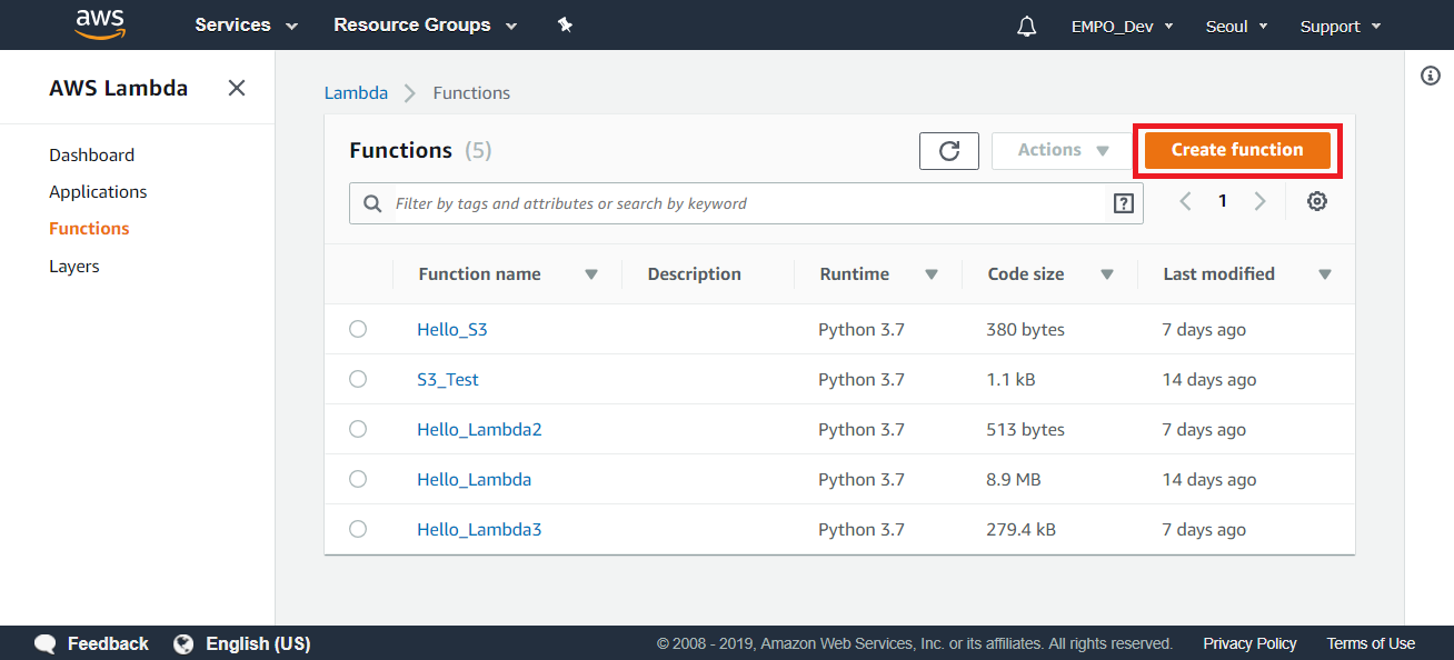 | AWS 람다(Lambda)에서 AWS S3 서비스 이용하기 (0) | 2019.04.17 |