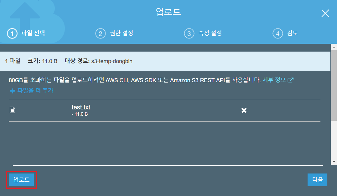 따라서 하나의 AWS S3 버킷에 파일을 업로드 해봅시다.