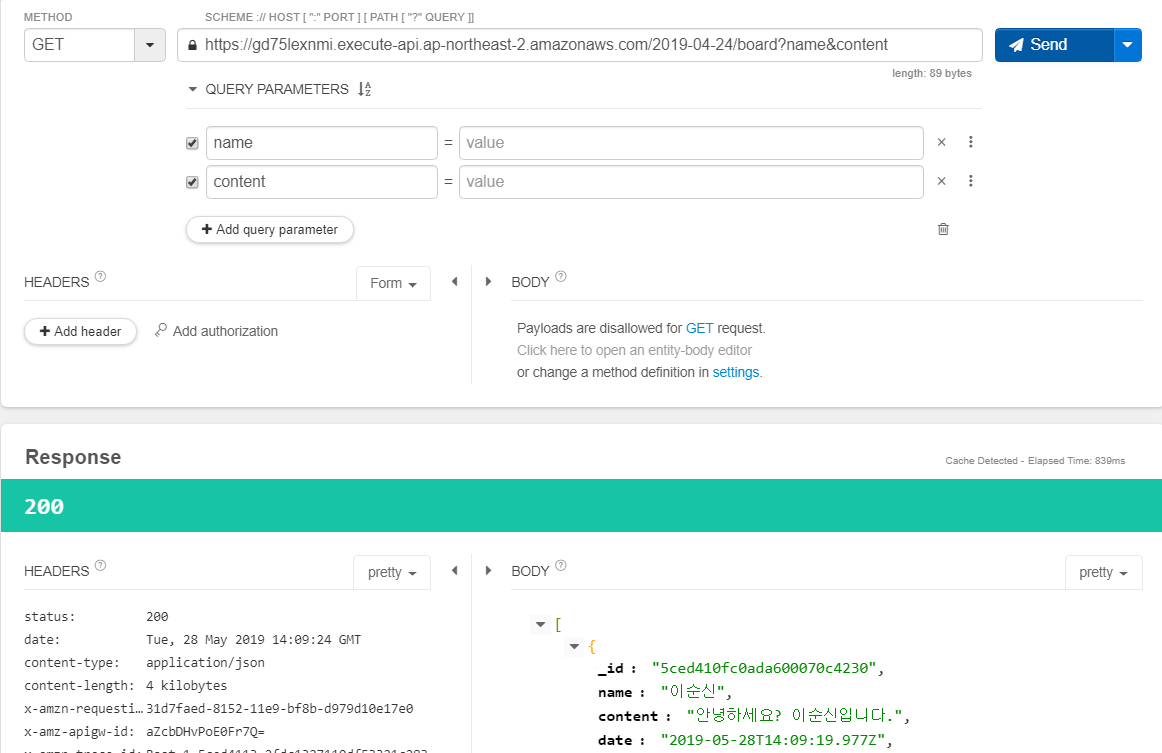 일단 API Gateway를 붙여서 API 테스트를 해보겠습니다.