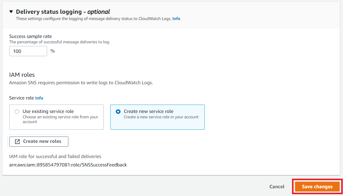 다음과 같이 SNSSuccessFeedback 규칙 이름 그대로 생성합니다.