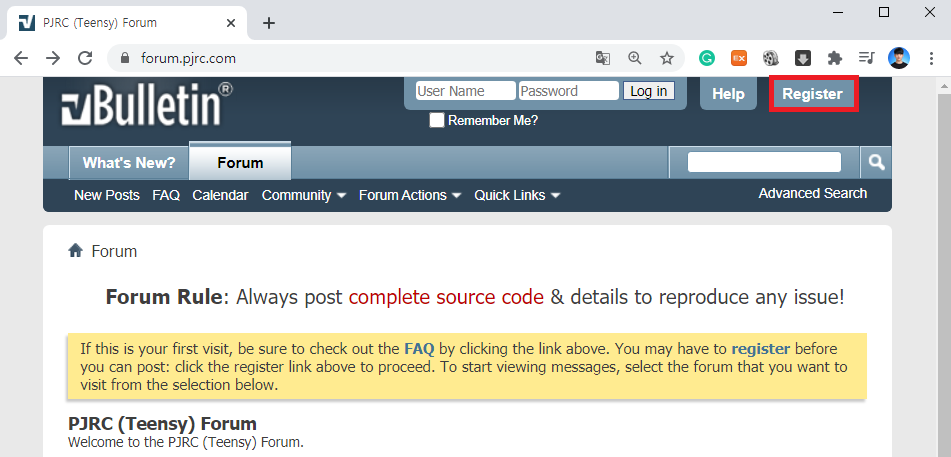 PJRC (Teensy) 포럼(Forum) 회원가입 및 질문 올리는 방법