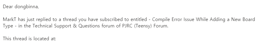 Teensy Board를 이용하는 경우 다양한 오류를 만날 수 있는데요. 해결하기 어려운 오류는 포럼(Forum)에 글을 남김으로써 다른 개발자에게 도움을 받을 수 있습니다. Teensy 포럼 웹 사이트의 링크는 다음과 같습니다.