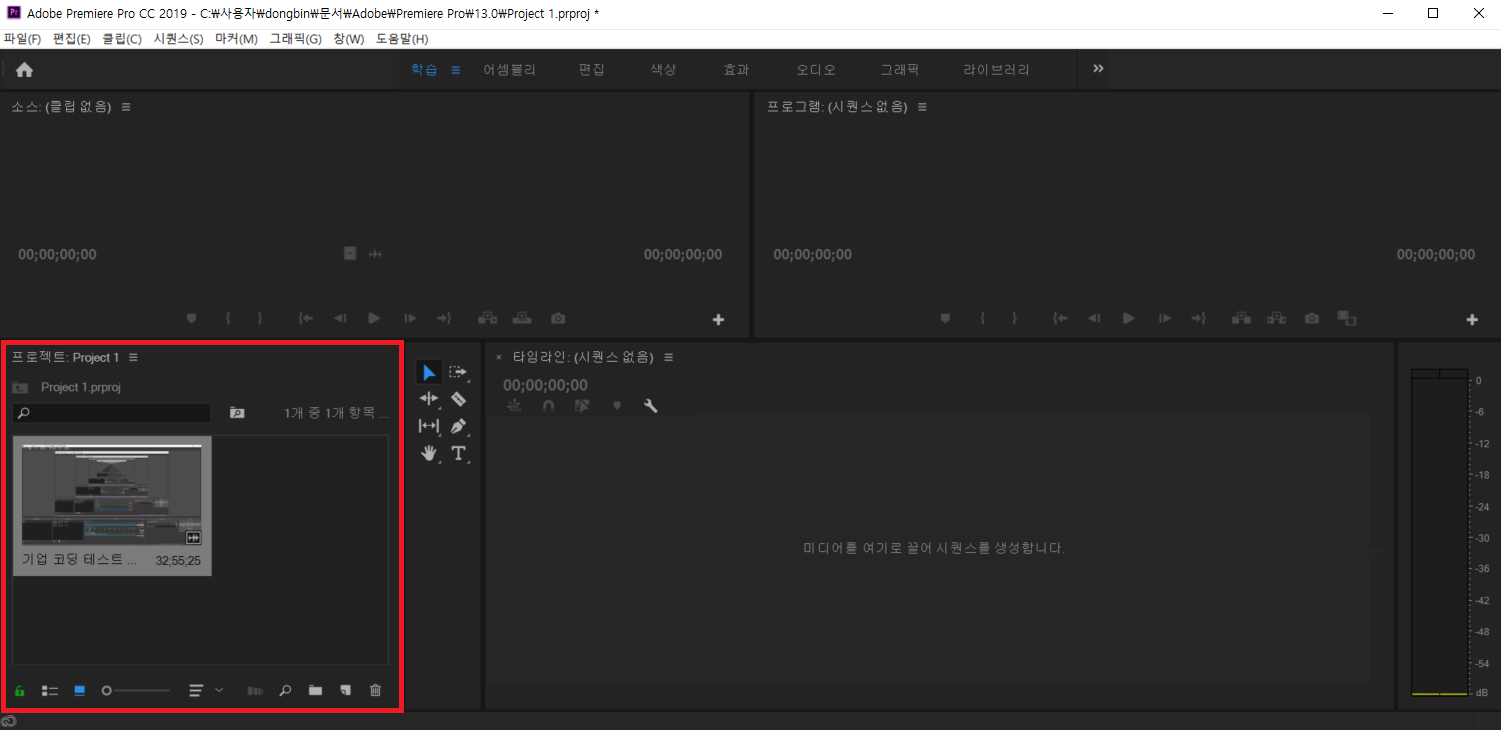 이제 왼쪽 아래의 [프로젝트] 탭으로 드래그 앤 드롭(Drag & Drop)을 해서 영상을 불러올 수 있습니다.