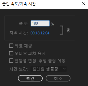 참고로 속도를 빠르게 하면 일반적으로 음의 높이가 올라갑니다. 이걸 막기 위해서는 [Maintain Audio Pitch]를 체크하시면 되는데요. 저는 어차피 나중에 다시 원상복귀 시킬 거라서 체크하지 않습니다.