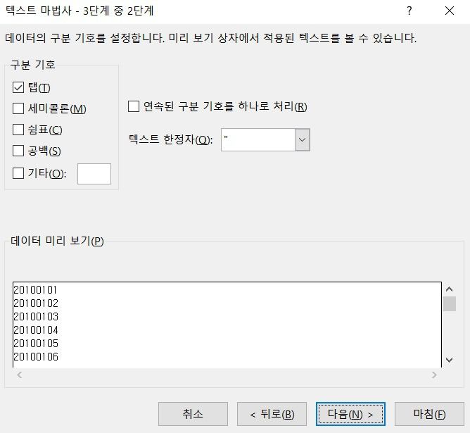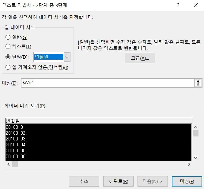 저는 데이터 정제 과정에서 연도(Year) 정보를 단순한 숫자 형태로 넣었는데요, 엑셀 내에서 시간에 따른 데이터 시각화를 위해서는 '텍스트 나누기' 과정이 필요합니다.