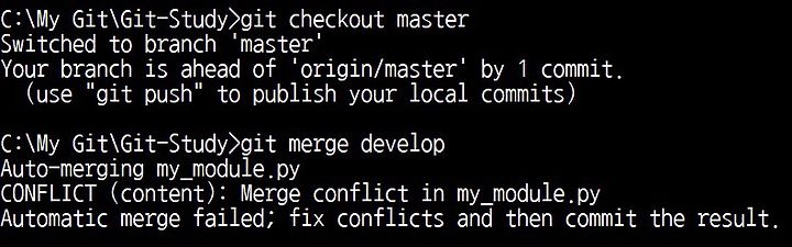그러면 충돌(Conflict)이 발생했다는 메시지가 출력됩니다.