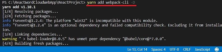 6. yarn add 명령어를 통해 웹팩(Webpack) 클라이언트 모듈을 설치합니다.