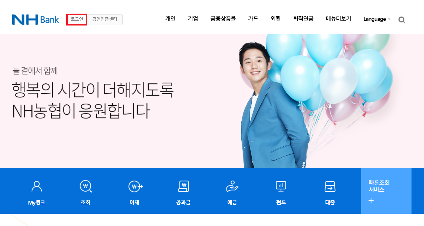 농협 사이트로 들어가서 [로그인]을 진행하시면 됩니다.