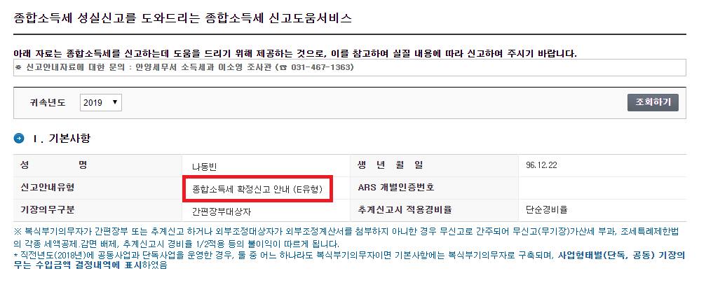 또한 필자의 경우 사업소득 외에도 기타소득이 존재하기 때문에, 다음과 같이 기타소득도 존재한다는 내용도 같이 출력되는 것을 알 수 있습니다.