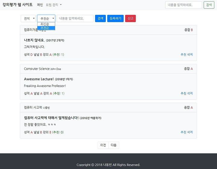JSP로 강의평가 웹 사이트 개발하기 ⑩ 추천 및 삭제 기능 구현하기
