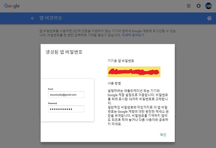 이제 위와 같이 다시 '로그인 및 보안' 탭에 들어가면 '앱 비밀번호' 부분이 있습니다. 이를 생성해주시면 됩니다.