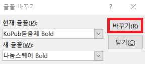 [바꾸기] - [글꼴 바꾸기]를 클릭한다.