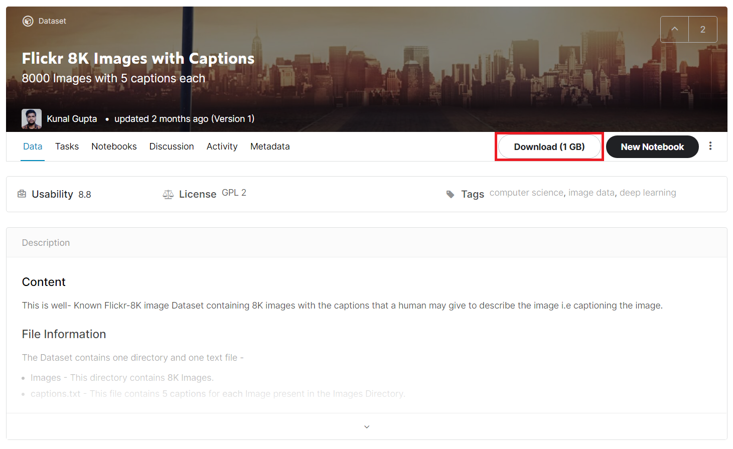 ▶ 데이터셋 링크: www.kaggle.com/kunalgupta2616/flickr-8k-images-with-captions