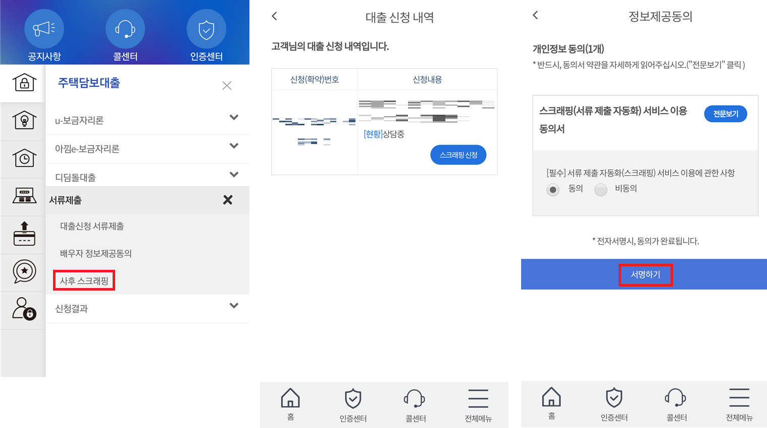 4. 대출 신청 이후에 대출 상담: 대출 신청 이후에는 전화로 신청 내용에 관하여 상담을 진행한다. (콜센터 상담)