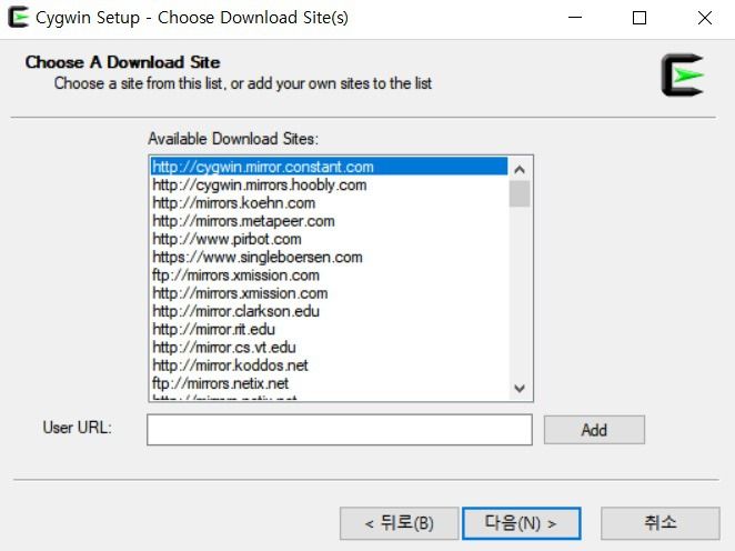 이제 실제로 설치를 하기 위해서 다운로드를 받을 서버를 설정하시면 됩니다. 저는 아무 서버나 선택해서 다운로드를 진행했습니다. 시그윈 자체가 가벼운 프로그램은 아니기 때문에 어떤 것을 선택해도 약 5분 가량의 시간이 소요될 겁니다.